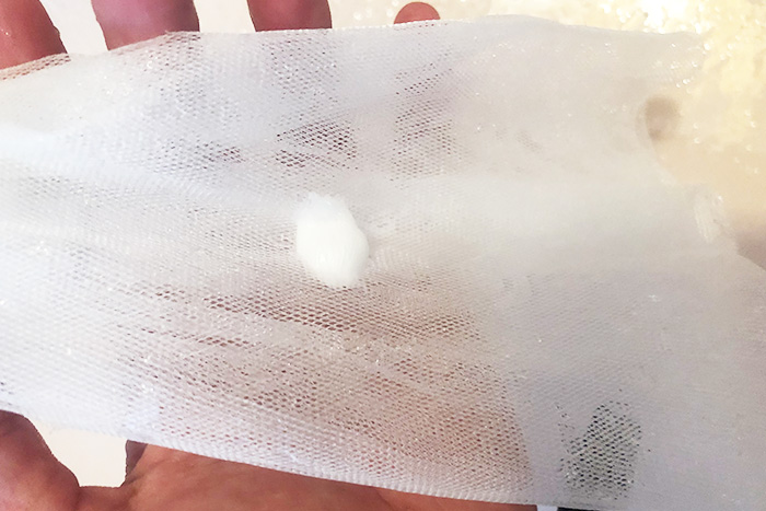 オルビスユーで特にお気に入りなのが、洗顔料オルビスユー ウォッシュ。量をちょびっとだけ洗顔ネットへ。